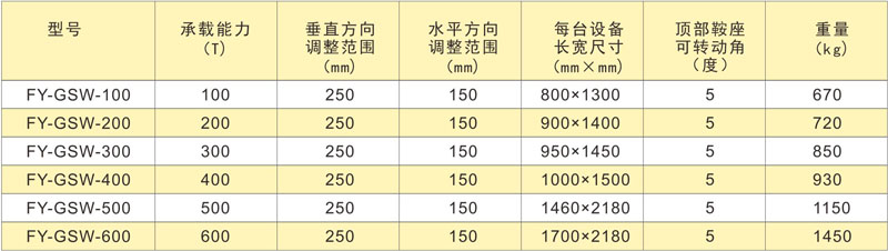 固定型分段三維調(diào)整機技術參數(shù):